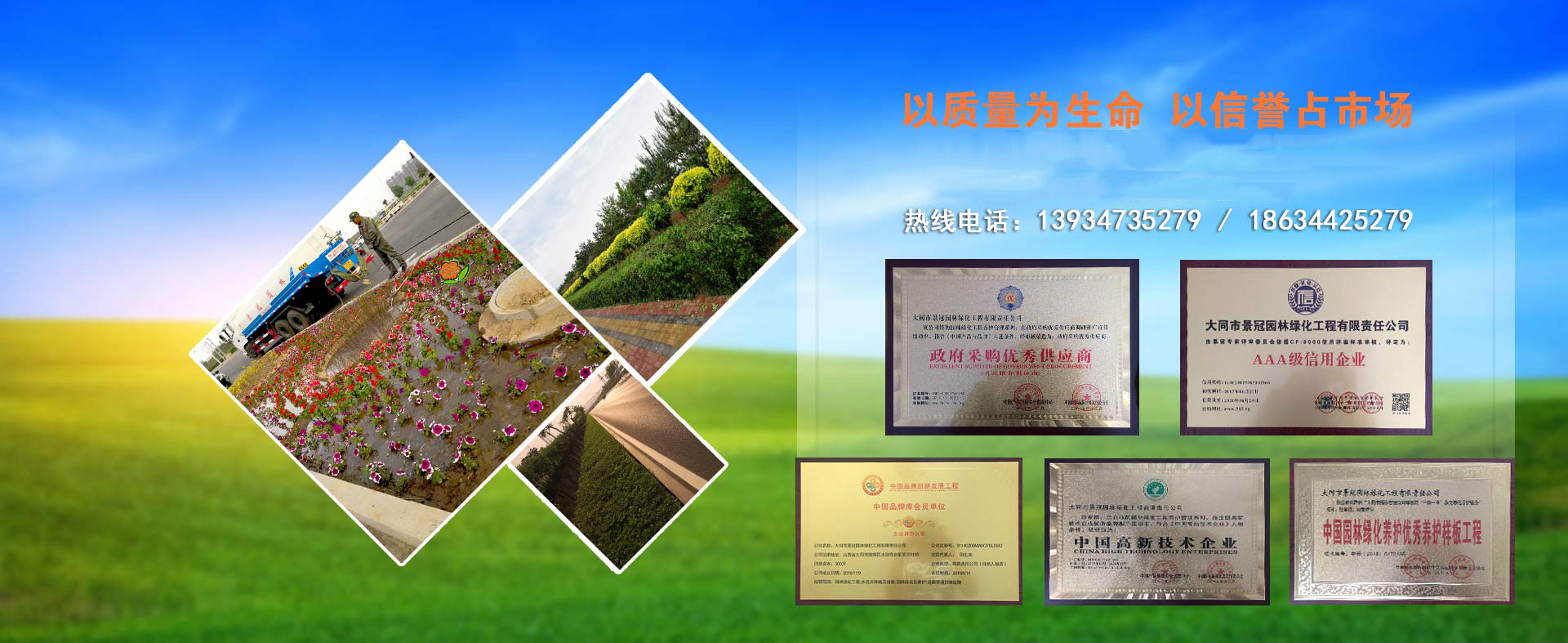 大同市景冠園林綠化工程有限責(zé)任公司是一家根植于設(shè)計、施工、植保養(yǎng)護(hù)、苗木花卉生產(chǎn)于一體的園林景觀企業(yè)。公司“以質(zhì)量為生命”、“以信譽求發(fā)展”這是公司一貫的經(jīng)營宗旨。并以創(chuàng)新,誠信,綠色,共享的發(fā)展理念,創(chuàng)造良好的企業(yè)環(huán)境。堅持愛綠,護(hù)綠,保綠的方針為城市增添一份綠色,用綠色擔(dān)當(dāng)生態(tài)建設(shè)使命是我們共同追求的價值和企業(yè)目標(biāo)。以全新的管理模式,完善的技術(shù),周到的服務(wù),卓越的品質(zhì)為生存根本。幾年來我們致力于園林景觀植物領(lǐng)域的研究,在城市綜合體景觀,校園園林景觀,道路景觀,生態(tài)農(nóng)業(yè)景觀,美麗鄉(xiāng)村景觀,濕地景觀等多個領(lǐng)域參與規(guī)劃設(shè)計施工。不斷加大科技投入力度,加強人才的儲備,網(wǎng)絡(luò)技術(shù)的培訓(xùn),提升自主創(chuàng)新能力,不斷完善企業(yè)文化,用超前的技術(shù)制定出一套完整的園林植保技術(shù)管理方案。我們堅持以擔(dān)當(dāng)為使命,用戶至上,服務(wù)至上,秉持初衷,不忘初心,實實在在,心無旁騖做好植保養(yǎng)護(hù)主業(yè),打造屬于自己的企業(yè)品牌,好好服務(wù)客戶,打動客戶。